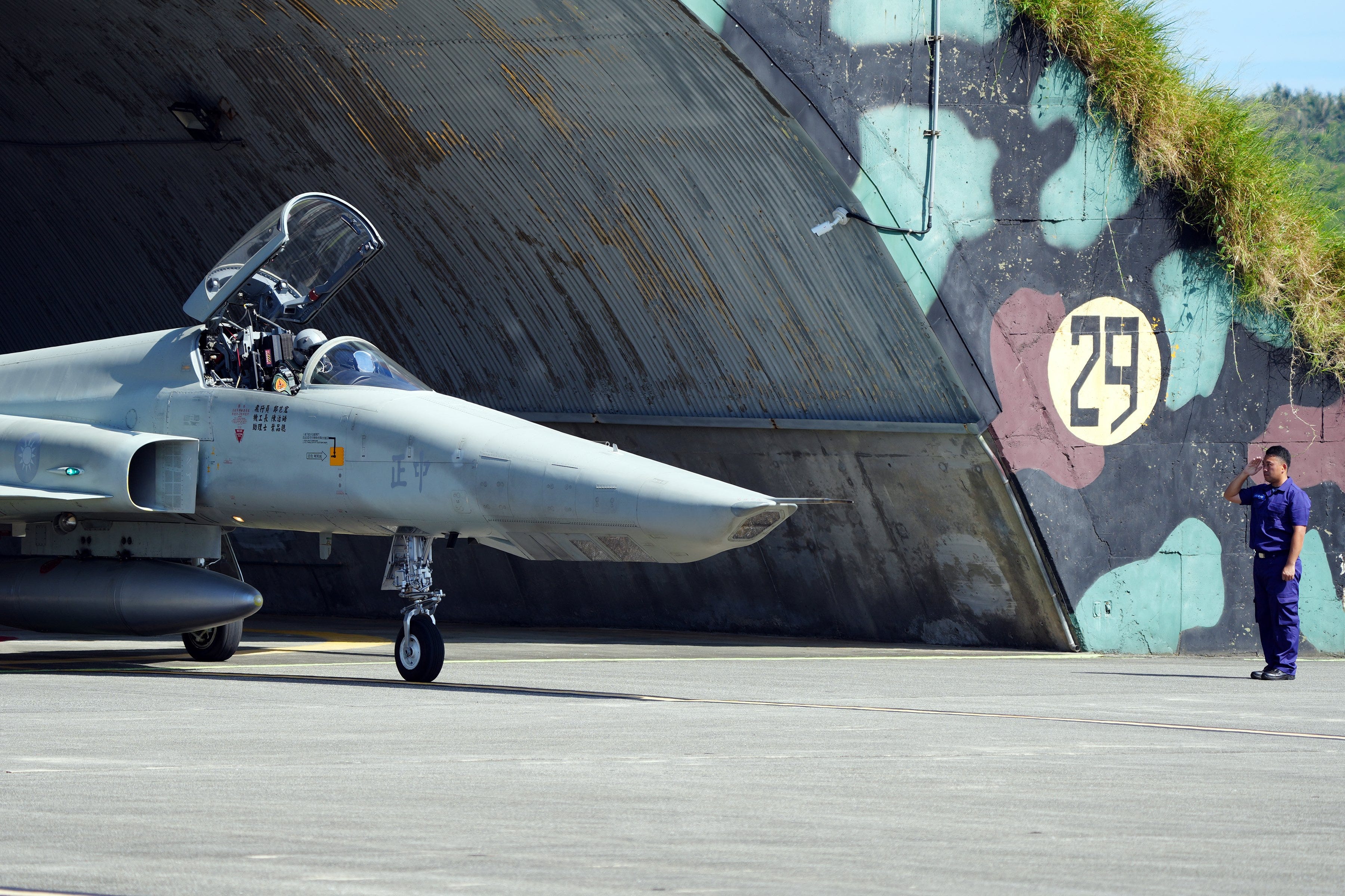 Taiwanese fighter jet leaving its hangar.