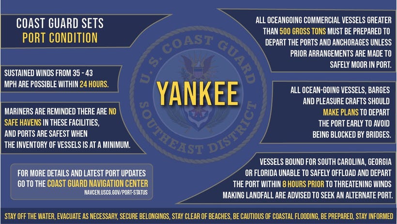 The United States Coast Guard has set Port Condition YANKEE for seaports in the United States Virgin Islands and Puerto Rico, effective August 15 and 16, 2025, respectively. This restricts inbound vessel traffic and requires ocean-going vessels over 500 gross tons to depart or secure moorings.
