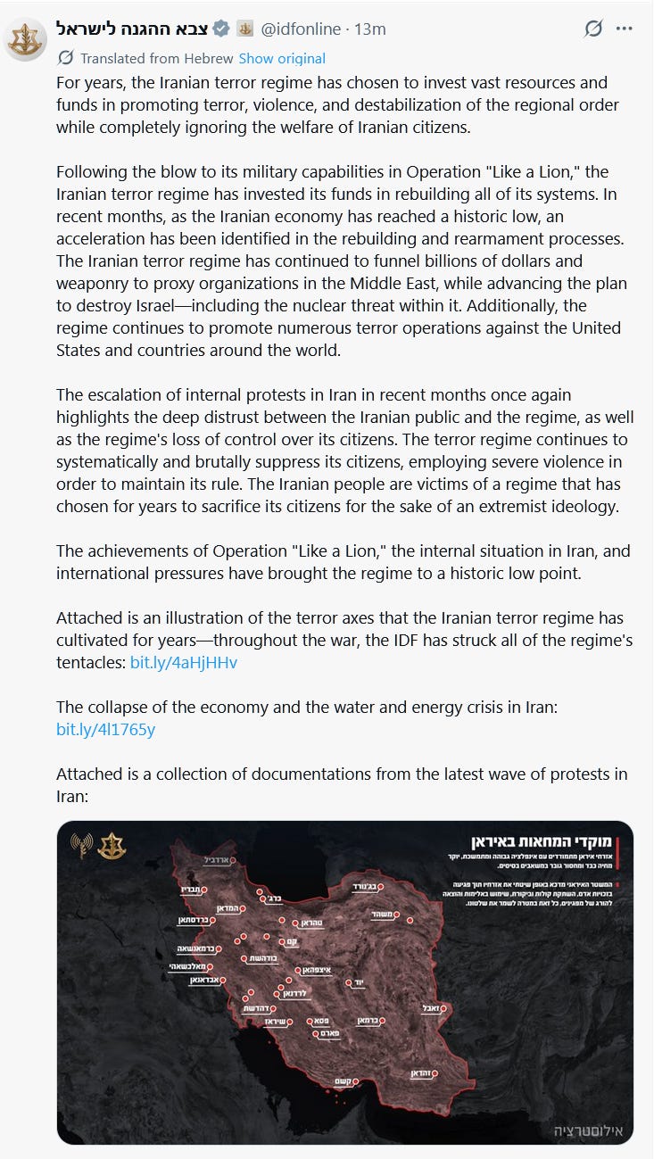 MideastIDF Posts Target List For Strikes In IranIDF Posts Target List For Strikes In IranDefcon LevelFeb 28, 202621ShareRefer a friendRefer a friendPreviousNext