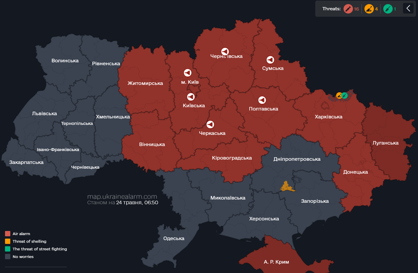 The country's military says that the Capital remains under threat of Russian airstrikes. The following map shows the current status acco…