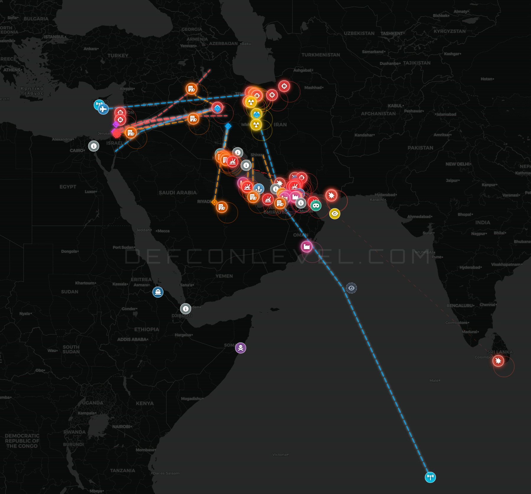 Maritime casualties: 4 confirmed killed (1 crew on MKD VYOM, 1 shipyard worker at Port of Bahrain, 2 crew on SKYLIGHT), 1 disputed (LCT AYEH: reported killed by some sources, hospitalized and stable by others), 8 feared dead (Mussafah 2 salvage tug), 1 worker injured at Duqm Port, 10+ injured across vessel incidents