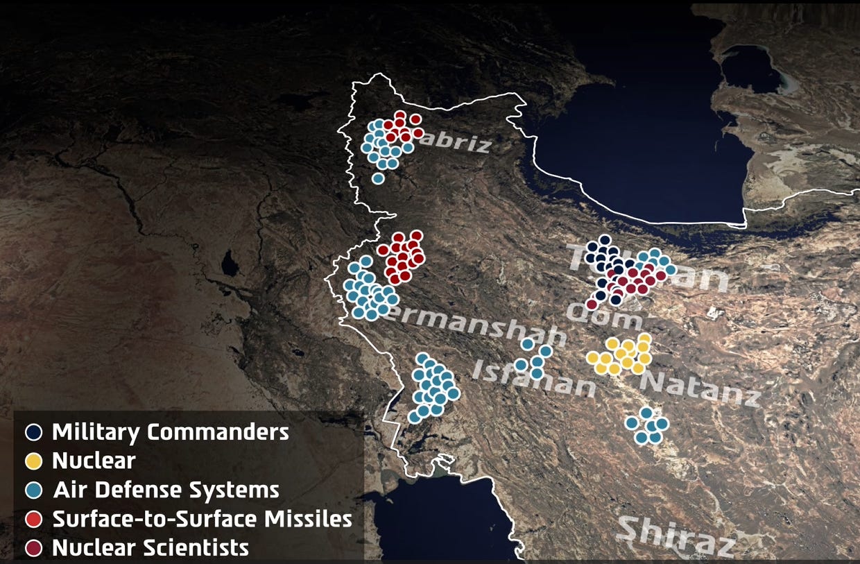 The IDF states that the country is striking across Iran to meet its objectives in "eliminating the existential Iranian threat to the State of Israel".