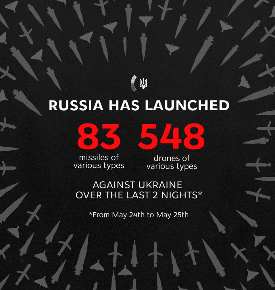 Ukrainian Ministry of Foreign Affairs: "Over the past two nights, Russia launched nearly 90 ballistic and cruise missiles and more than 500 drones against Ukraine.”