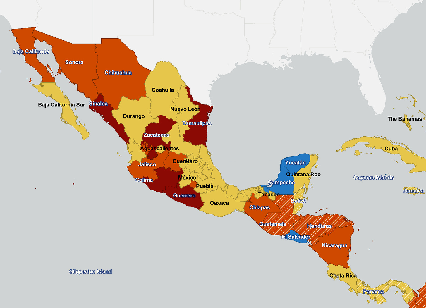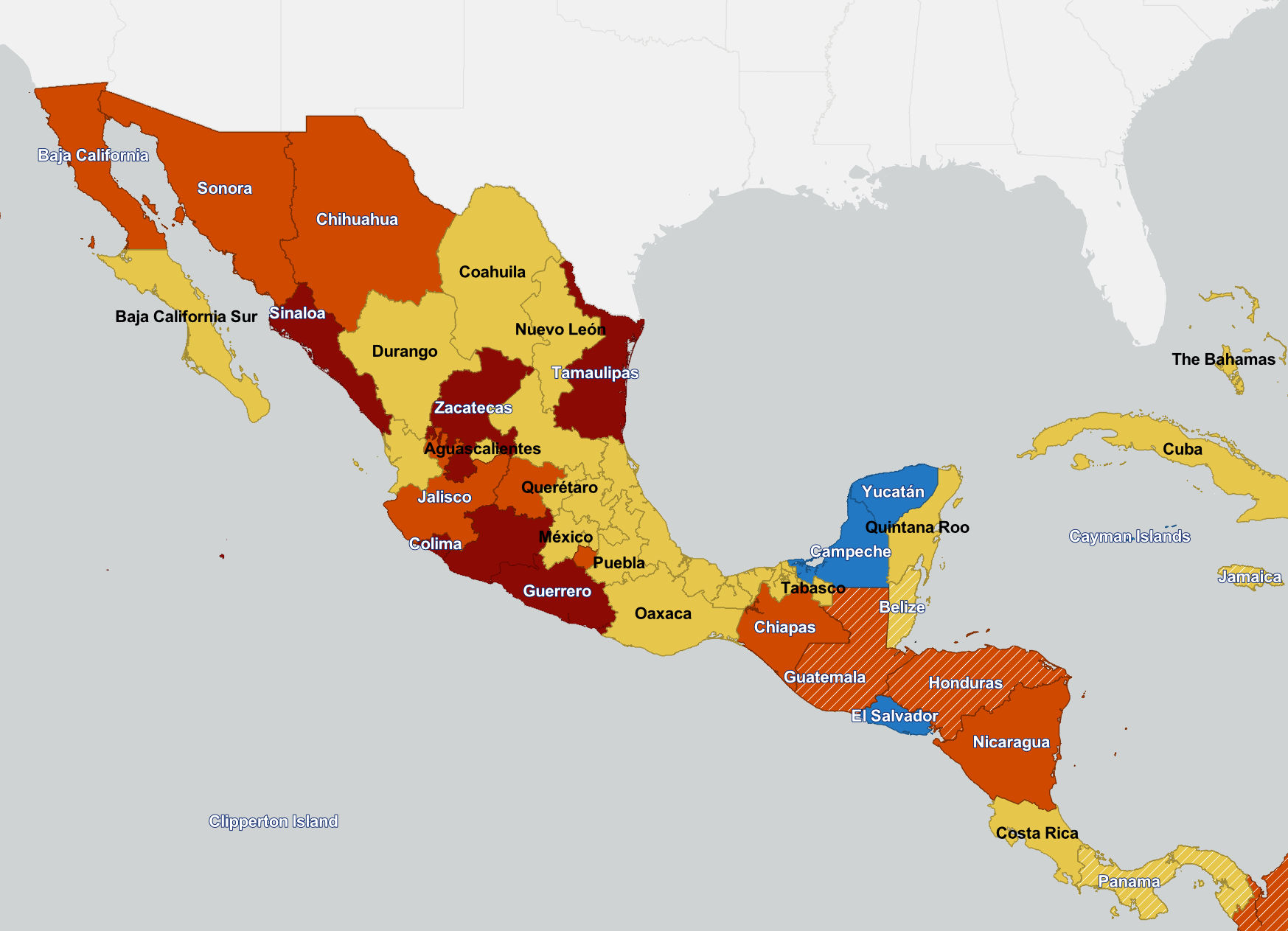 Airlines continue to adjust schedules; passengers must confirm flights directly with carriers before traveling to airports. Conditions have stabilized in Quintana Roo State (including Cancún, Cozumel, Playa del Carmen, and Tulum), Baja California (including Tijuana, Tecate, and Ensenada), Sinaloa, Tamaulipas, Colima, Guanajuato, Estado de Mexico, Nuevo Leon, Oaxaca, Puebla, Queretaro, San Luis Potosi, Veracruz, and Zacatecas.