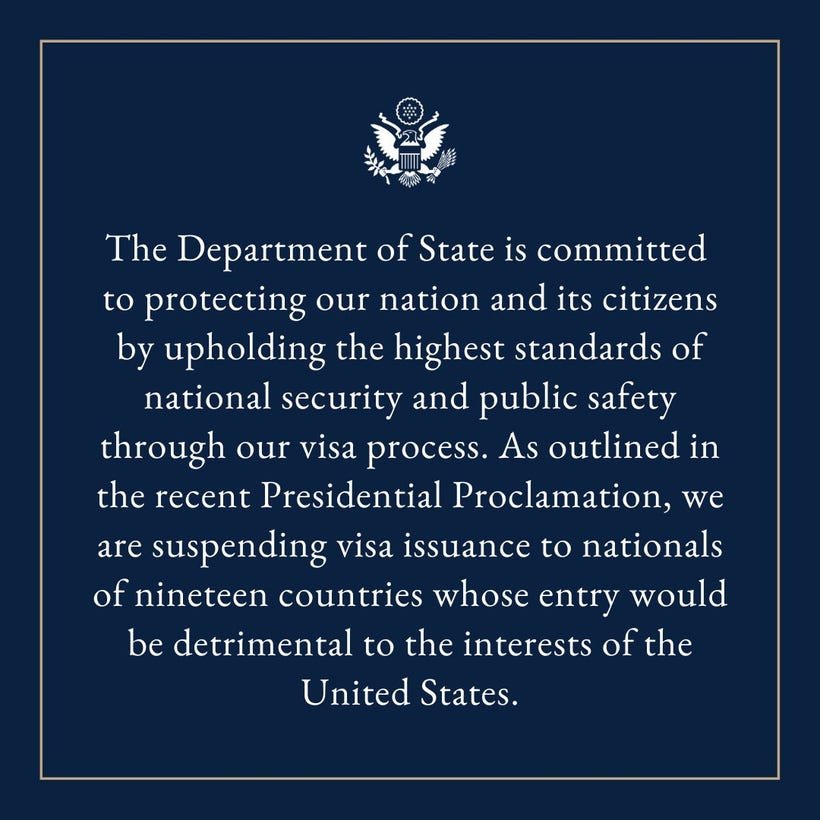 SOUTHWEST U.S. — The U.S. Department of State suspended visa issuance to nationals of nineteen countries effective June 9, 2025, citing national security concerns. At least one country included in the suspension list has since suspended visa issuance for American citizens in response.