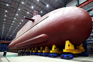 Kim Jong Un inspected the ongoing construction of an 8,700-ton nuclear-powered strategic guided missile submarine at a warship-building facility.